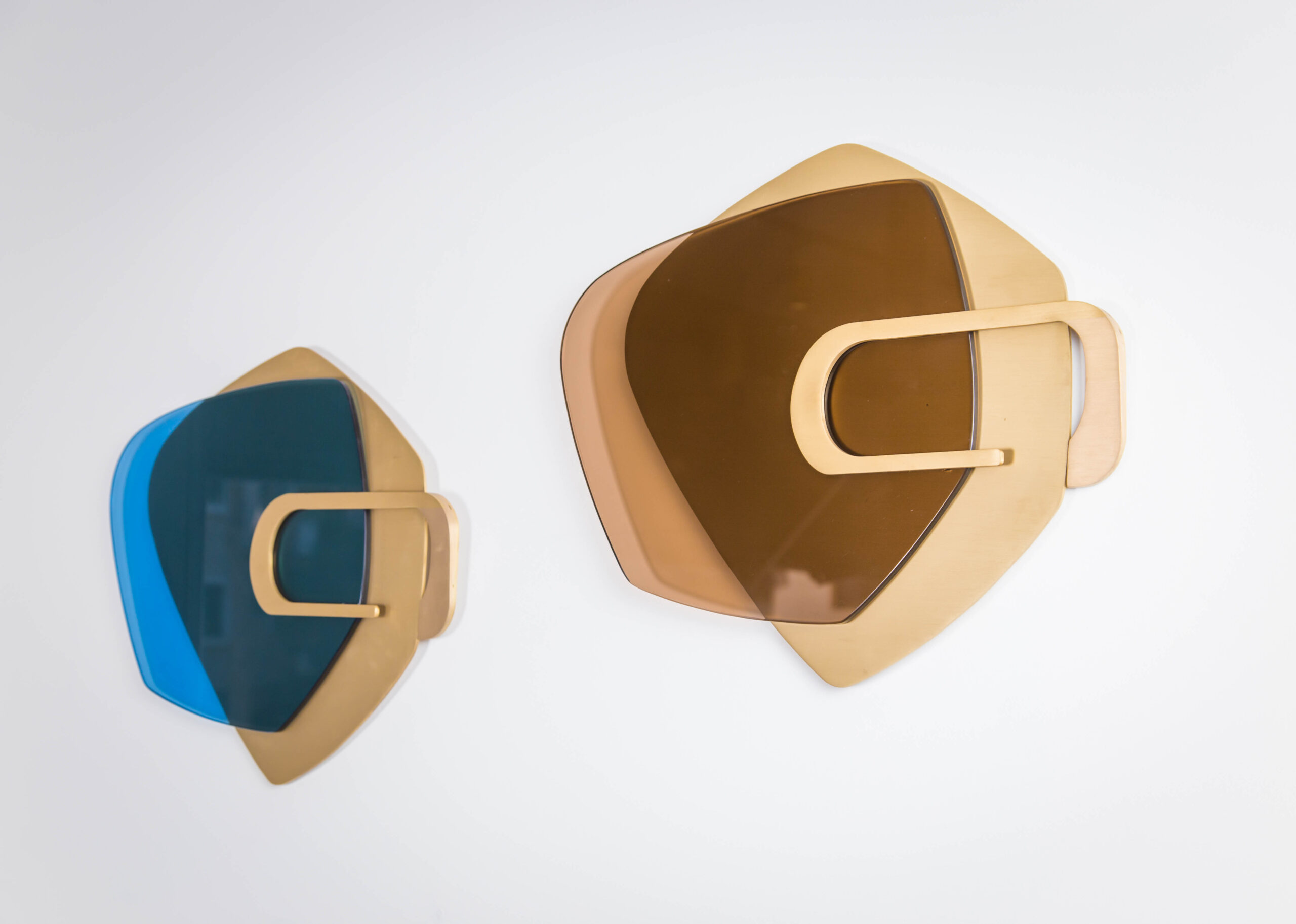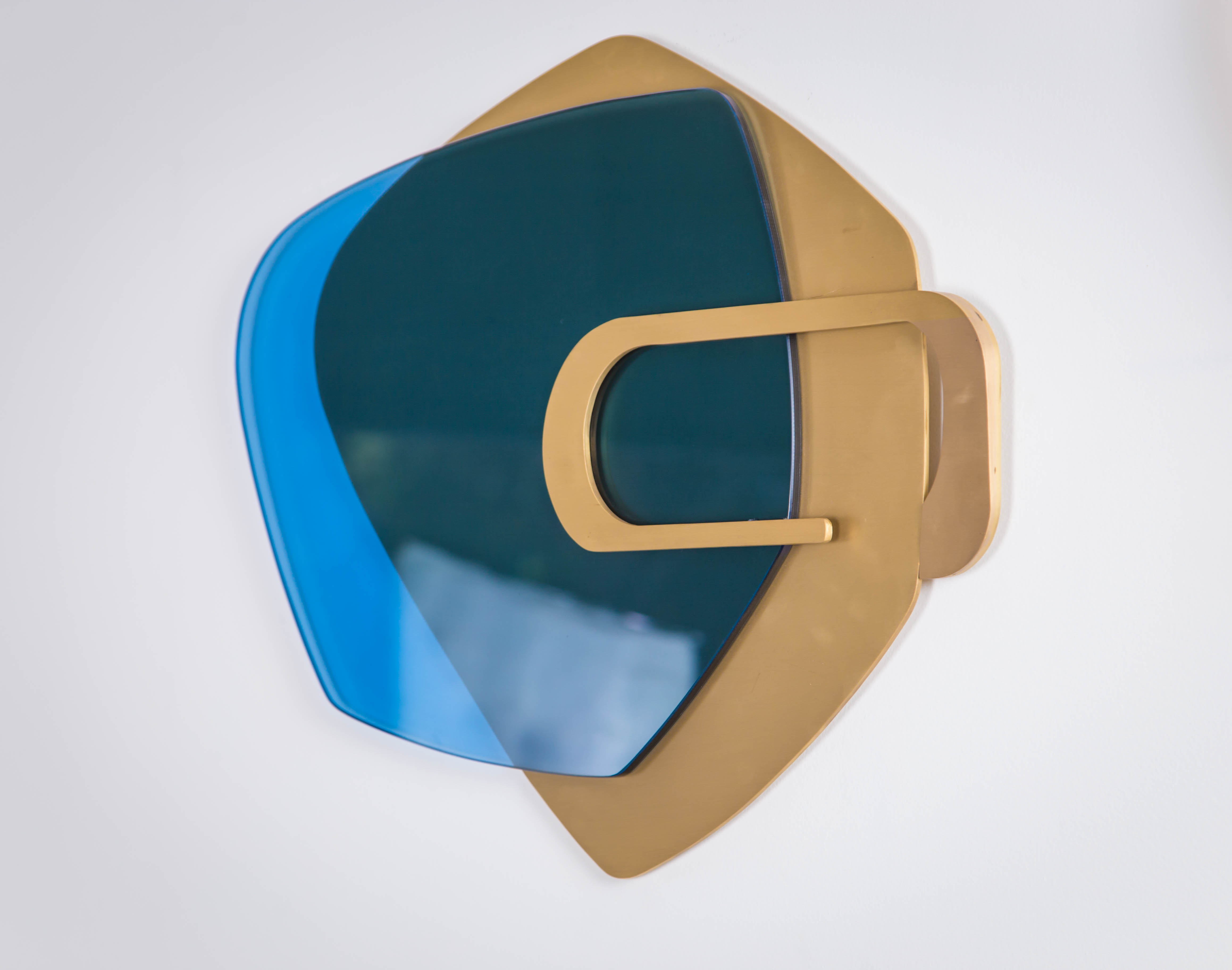 A graceful and stylish wall piece @lama_k_salloum that highlights a charming affair between brass and glass. A scintillating brass hitched to a bright translucent glass with a symbolic bond, is an artistic statement in any space. Now available at our studio in various glass colors.