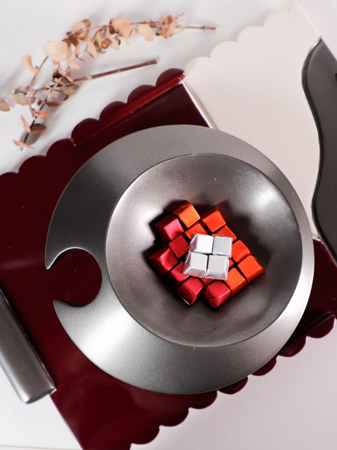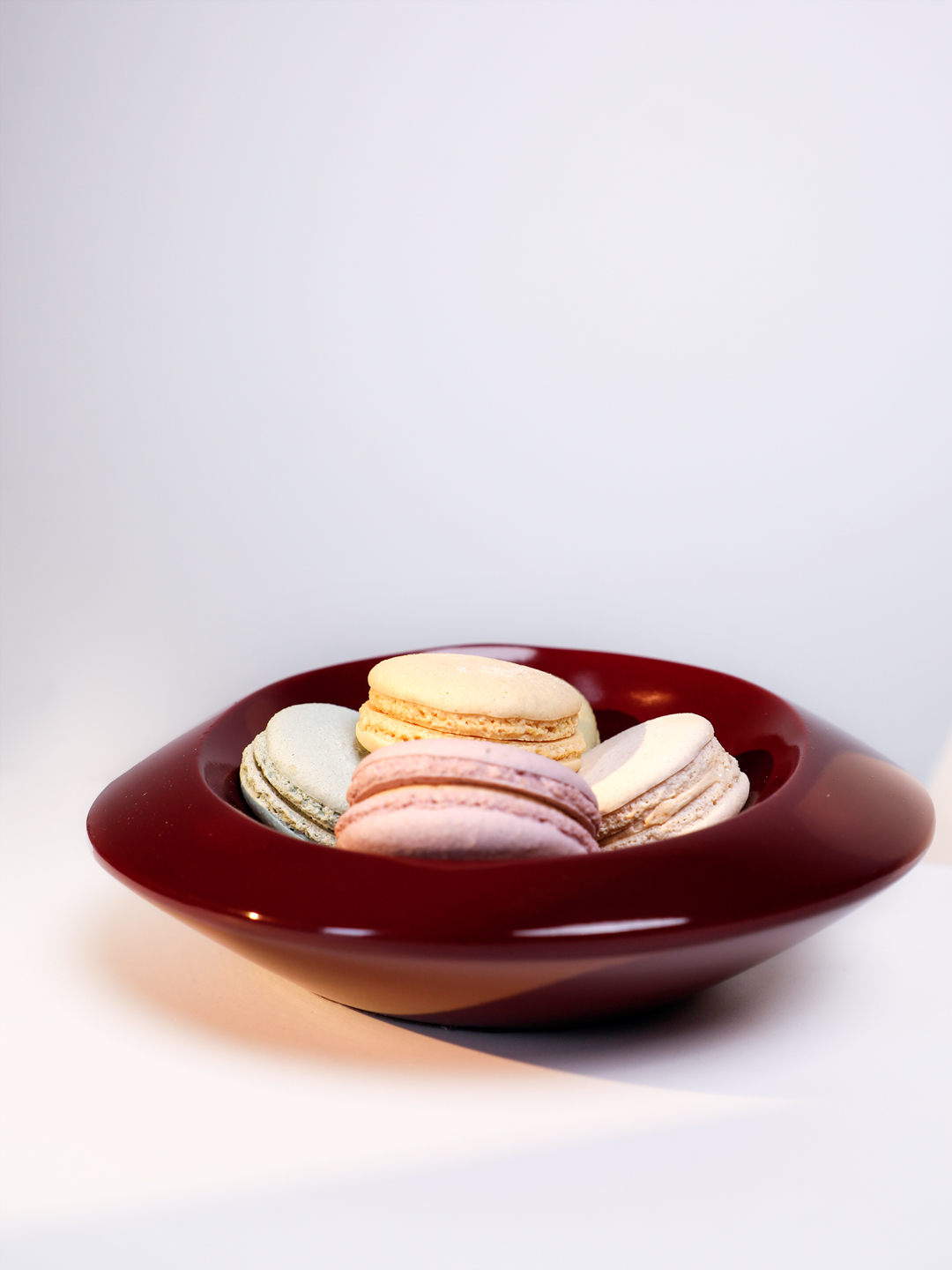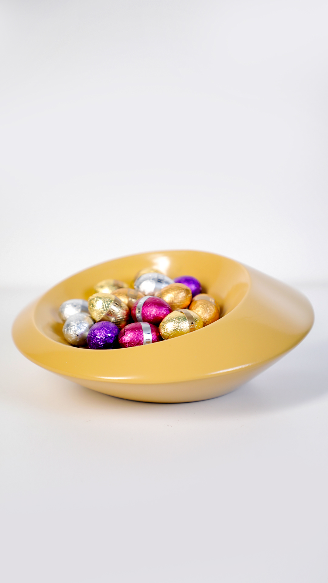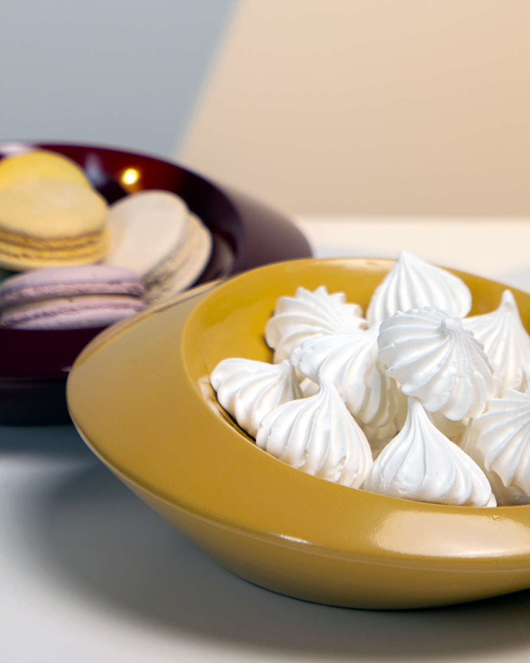 A stand out piece, Kepler is a vividly colored wooden bonbonnière with an asymmetric orbicular form. An engraved void motif traces its edge, creating a subtle architectural touch. Its gently concaved center forms an elegant platter, perfect for presenting sweets and chocolates with sculptural flair.